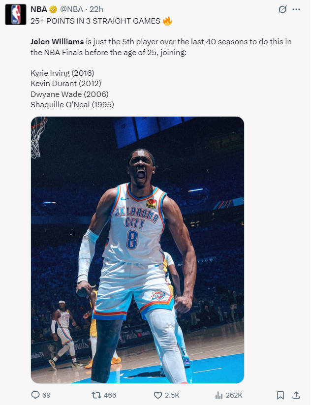 3.杰威也成为过去40年第五位在总决赛连续三场25+且年龄不足25岁的球员;